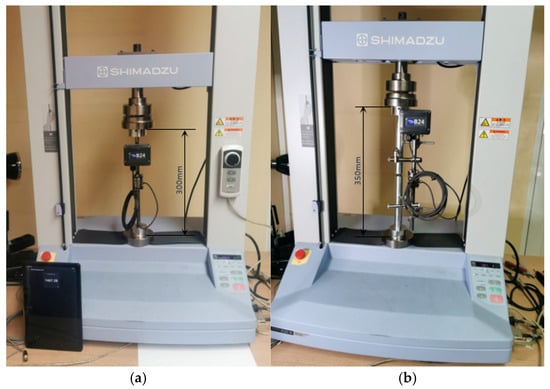 The Shimadzu computer-controlled UETM is used to measure the compressive axial load. The UETM with the sensor inserted between joints for compression tests is shown in Figure 3a. Sensor inserted in the middle of the vertical rod is shown in Figure 3b.