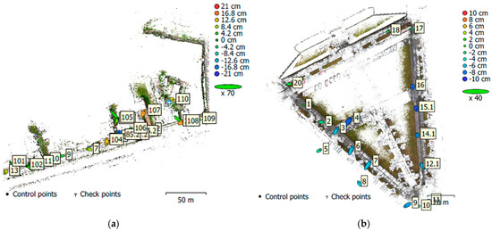 Ground point deviations: (a) case study of Lipová street; (b) case study of Fleming Square.