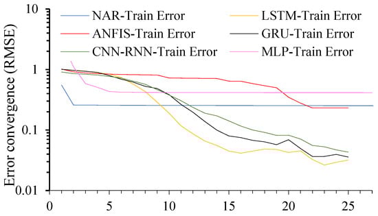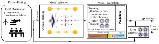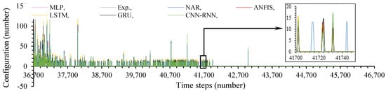 In the literature on modelling and prediction, there are too many studies. However, few studies have handled failure prediction using AL methods. This study aims to address that gap by evaluating the performance of six AL models—NAR, LSTM, GRU, adaptive neuro-fuzzy inference system (ANFIS), MLP, and CNN-RNN—for failure prediction in an assembly line. A time series, so-called “configuration”, is handled. Each model inherently has distinct features. NAR is a variant of MLP specialised for time series. LSTM and GRU are deep recurrent networks, while ANFIS is a hybrid neuro-fuzzy system. Also, CNN-RNN is another hybrid model integrating both convolutional and recurrent neural networks. The trained networks are assessed through testing–validation iterations, with an additional closed-loop forecast.