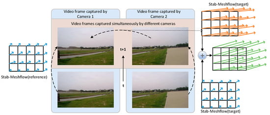 To begin with, consider two consecutive frames, and . This study defines the function Stab(⋅) to directly estimate the motion vectors of grid nodes between the two frames: