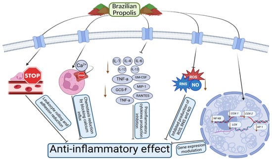 Visualization of the potential anti-inflammatory mechanisms of Brazilian propolis (created with BioRender.com).