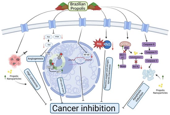Visualization of the potential anticancer mechanisms of Brazilian propolis. Created with BioRender.com.