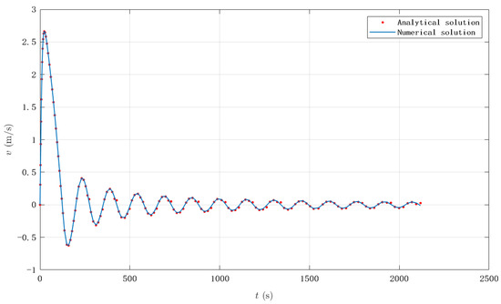 However, there are some errors generated while computing v, L, and from expressions (36)–(38). These errors arise from the truncation of the numerical computations of the integral terms (, , , and ) and the series . In addition, round-off errors might come up due to hardware architecture and software configuration used for calculations. All these errors can be compensated by selecting an appropriate step size for the time variable.