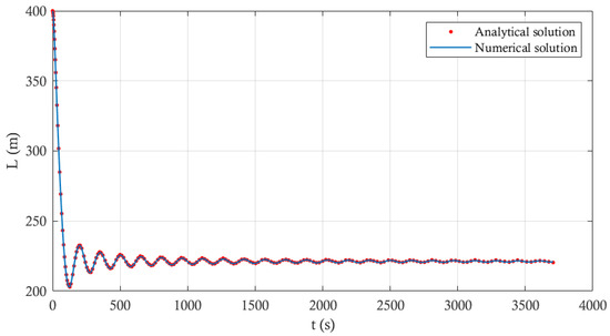 Because , the functions P and Q are continuous for all L evaluated in the interval . Thus, Equation (18) possesses a unique solution satisfying the initial condition , given by the formula (see Reference [24]).