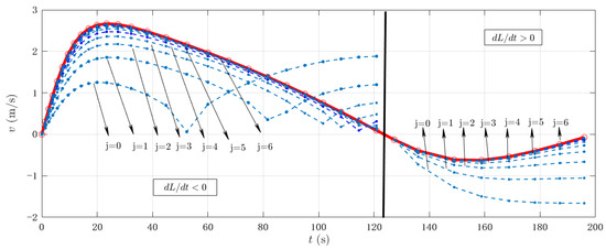 The value is defined as . Under this condition, it is ensured that keeps the same sign for all , i.e., . Also, the continuity of v is guaranteed because of the nature of the physical phenomenon. Thus, Bolzano’s theorem from calculus [24] states that, given a change of sign in v, there has to be a value where =0. This value is precisely (i.e., ).