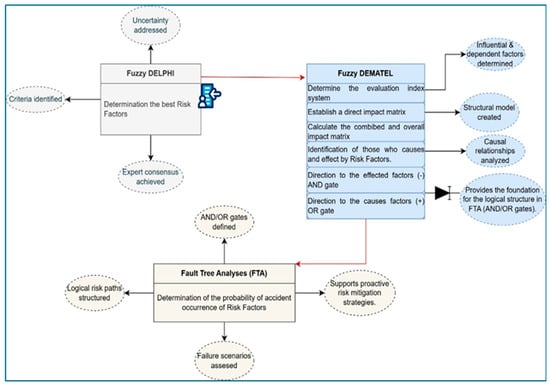 39]. When utilising FTA analysis in conjunction with Fuzzy DEMATEL, it is imperative to establish a linkage between the relationships inherent within cause-and-effect factors, as delineated by the Fuzzy DEMATEL, and the broader context of FTA analysis. The FTA method has emerged as an increasingly prevalent analytical approach for calculating accident and event probabilities in recent years.