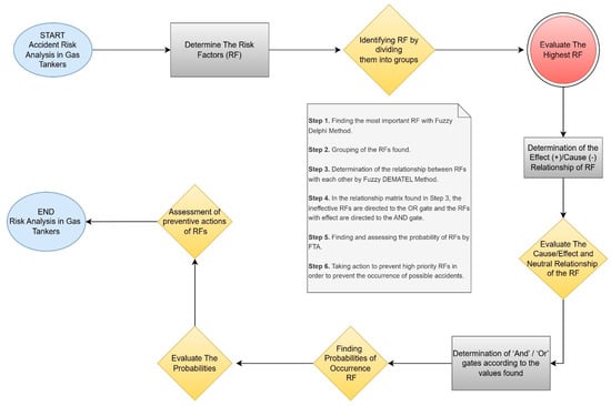 The methods employed in this study were conducted within a three-stage process. In the initial phase, the Fuzzy Delphi method was employed to ascertain the criteria and factors. Subsequently, the Fuzzy DEMATEL method was employed to analyse the interaction levels between the most critical factors identified. This method was employed to elucidate the direction and intensity (effect, reaction, or neutral) of the relationship between the factors. In the final stage, the data obtained from the Fuzzy DEMATEL method were evaluated using the Fault Tree Analysis (FTA). This enabled the calculation of the probability of events and accidents, as well as the determining of the relationships between risks. Consequently, a combination of three methods was developed to ascertain the probability of accidents in gas tankers.