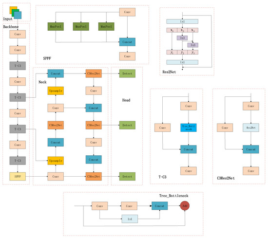 Although YOLOv5 achieves a good balance between accuracy and parameter count, in order to be better deployed to edge devices, the number of parameters and computational costs of the overall network model must be reduced. The parameter count and computational load of the network model are mainly concentrated in the backbone network. Wang [34] et al. replaced the C3 module in the network with S-Ghost. Although the model is lightweight, it has higher computational complexity and puts higher demands on hardware resources. This can be a problem on resource-limited edge devices, which often have limited computing power. Therefore, we proposed T-C3, inspired by Tree block [35]. After replacing C3 in the network with T-C3, the parameter count and calculation cost of the model will be greatly reduced, but the ability of feature extraction will be reduced, resulting in a slight decrease in accuracy.