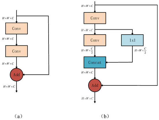 Modified Bottleneck structure diagram. (a) The original Bottleneck; (b) the modified version.