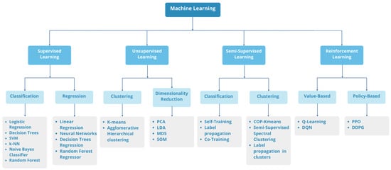 Figure 4 outlines the key ML algorithms commonly associated with each learning paradigm.