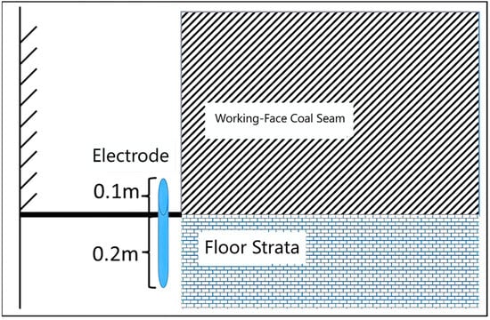 The monitoring electrodes are strategically deployed in Working Face Entries 1 and 2. To optimize monitoring efficacy, steel electrodes must be driven into the floor strata. Electrode installation follows these specifications:
