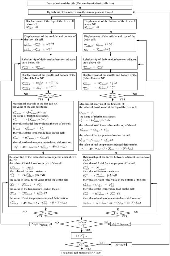 Step 2: The distribution of the axial force, strain, and lateral resistance of the energy pile along the pile is determined according to the algorithm shown in Figure 4.