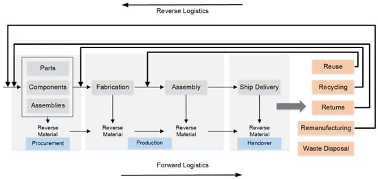 Schematic diagram of shipbuilding forward and reverse logistics.
