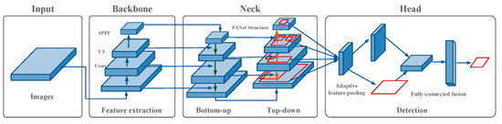 The YOLOv5 network is composed of four main components: Input, Backbone, Neck, and Head, as shown in Figure 1. The Backbone processes the input image through a series of Convolution layers (Conv) and C3 layers (containing 3 standard Conv) to extract key features from the image. Finally, a Spatial Pyramid Pooling-Fast (SPPF) module is used to quickly capture multi-scale features, enhancing both the detection and speed of the model. The Neck performs further fusion and up-sampling based on features extracted by the backbone network. It adopts the Path Aggregation Network (PANet) structure, which first performs top-down feature fusion followed by bottom-up feature fusion. This structure enhances the detection accuracy and robustness of the model through effective feature fusion and information integration. The Head can fuse and transform features at different scales to capture higher-level semantic information and generate detection results [64,65]. Compared to traditional machine learning methods, YOLOv5 has superior nonlinear feature extraction and learning capabilities. Its lightweight and efficient model achieves higher accuracy and efficiency in target detection, performing excellently in complex tasks that are challenging to annotate manually [66,67]. Thus, this paper adopts YOLOv5s architectures to capture product morphological features in order to accurately reflect users’ aesthetic style preferences.