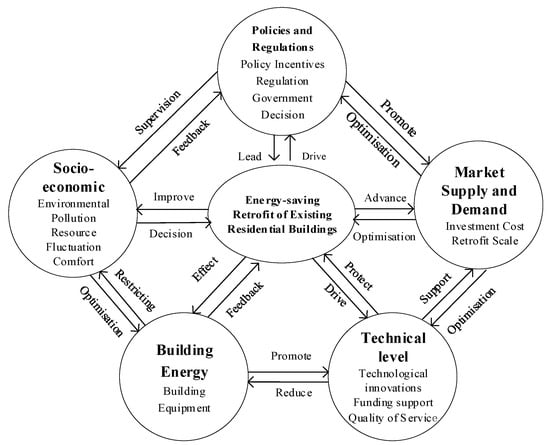 Therefore, in order to overcome these limitations mentioned in the literature, this study developed a system dynamics model considering market policies, regulations, and technology. We first considered various factors that affect retrofit programs on a macro scale, and based on factor interconnection, we established a transmission mechanism model for the old urban residential communities. In order to validate the proposed model, this research conducts a case study on Liaoning Province in China and assesses retrofit program effects.