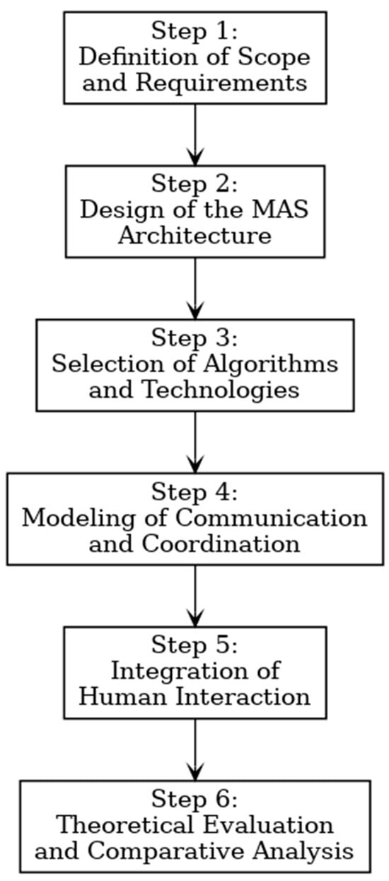 The methodology steps were defined based on standard practices in the design of intelligent multi-agent systems for logistics optimization, adapted to the specific operational conditions of Ro-Ro terminals. The methodology leverages heuristic algorithms, IoT infrastructure, and decentralized coordination protocols. Potential challenges include data integration, system interoperability, resistance to change among operators, and computational resource requirements.