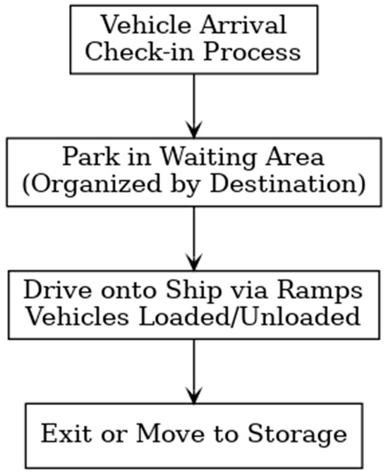 Ro-Ro terminals face unique logistical challenges due to the constant movement of vehicles and the need for optimized internal flows [19]. Efficient management of vehicle movements within the terminal is crucial to avoiding congestion, minimizing waiting times, and streamlining loading operations. To address this, advanced route planning models and smart technologies have been introduced to improve space allocation and traffic flow [13].