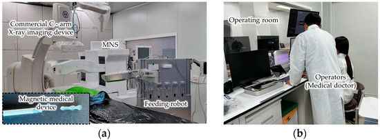- Lee, W.; Jung, E.; Kim, N.; Lee, D.; Kim, S.; Lee, Y.; Jang, G. Robotically adjustable magnetic navigation system for medical magnetic milli/microrobots. IEEE/ASME Trans. Mechatron. 2024, 29, 3949–3959. [Google Scholar] [CrossRef]