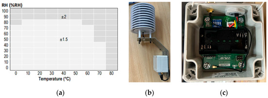 (a) Typical tolerance of RH over T for SHT35. (b) Appearance of the AWS. (c) Inside the MCU box.