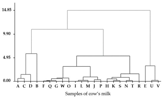 3.5. Classification of Milk Samples Through Dendrogram Analysis of Contaminants and Product Attributes