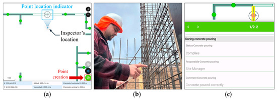 In the fourth stage, the proposed workflow was applied in a case study involving the construction of reinforced concrete walls. A project-specific inspection form was created and deployed in the field using a mobile device and GIS software for real-time data collection. The collected information was then transferred to the BIM model, enabling visualization and review of the inspection data directly within the digital environment. This stage served to assess the functionality of QualiSite and applicability to real-world construction quality management.