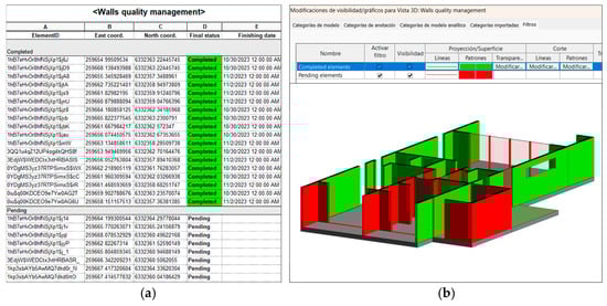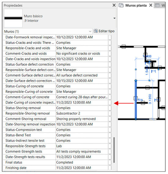 In addition to the theoretical framework, this study responds to practical challenges commonly faced in construction quality management environments, including fragmented information across stakeholders, paper-based documentation processes, and difficulties in accessing or updating inspection data in real time on-site. These challenges hinder traceability, slow down decision-making, and increase the risk of errors during construction. The proposed tool, named QualiSite, was explicitly designed to address these challenges by enabling centralized, georeferenced, and digitally accessible quality records within the BIM environment. To demonstrate its applicability, a case study was conducted focusing on the construction of reinforced concrete walls. This implementation allowed linking the status and progress of quality controls with a parametric BIM model, facilitating visualization and management of inspection documentation during construction. QualiSite improved the traceability of quality data and supported informed decision-making, helping to prevent errors during the construction phase [31].