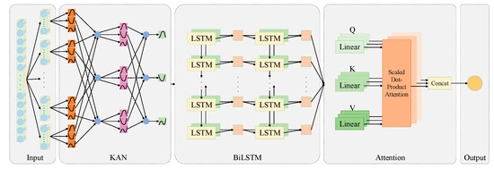 Structure of Kolmogorov–Arnold network bidirectional long short-term memory (KAN-BiLSTM) model.