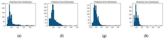 The error probability distribution curves of different models.(a) RNN + Region, (b) GRU + Region, (c) LSTM + Region, (d) BiLSTM + Region, (e) RNN, (f) GRU, (g) LSTM, and (h) BiLSTM.