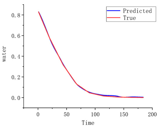 Figure 16 illustrates the data comparison and error distribution of the KAN-BiLSTM model. Compared with the basic BiLSTM structure, the KAN-BiLSTM model shows improved performance in capturing subtle variations in moisture content, with only minor deviations from the actual drying curve. Notably, in the moisture ratio range from 0.2 to 0—which is typically challenging to model accurately—the nonlinear prediction capability of the model is significantly enhanced.