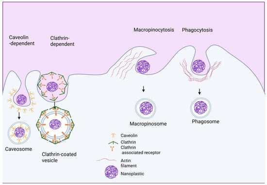 They rely on invagination into the plasma membrane and the formation of clathrin-coated vesicles and caveolar vesicles, which are then transported within the cell [105,107,109]; see Figure 3.