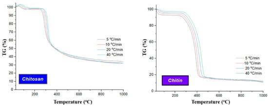 Figure 3, below, illustrates the TG thermograms for the carbonization of chitin and chitosan at heating rates ranging from 5 to 40 °C/min.