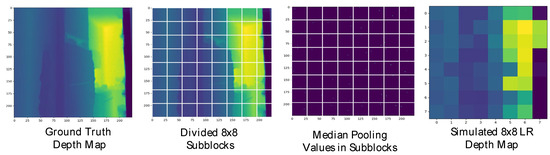 - Median pooling: We simply take the median value of each sub-block as the LP depth value to obtain the simulated LRLQ depth map.