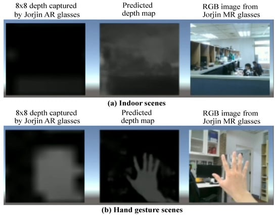 - The proposed network with low-cost MR glasses can attain the optimal fusion of low-resolution low-quality (LRLQ) depth maps and RGB images to achieve accurate high-precision depth maps, where the LRLQ depth map originally captured by the ToF depth camera in the MR glasses is very blurry.
