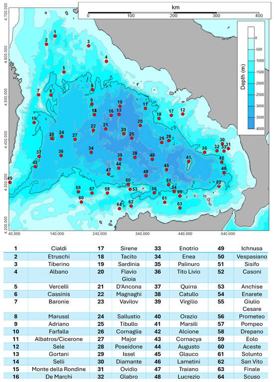 - Milano, G.; Passaro, S.; Sprovieri, M. Present-day knowledge on the Palinuro Seamount (south-eastern Tyrrhenian Sea). Boll. Geofis. Teor. Appl. 2012, 53, 403–416. [Google Scholar]