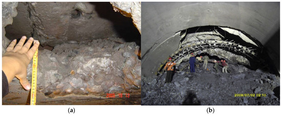 Tunnel defect: (a) insufficient lining thickness [3]; (b) construction-stage void-induced tunnel collapse [5].