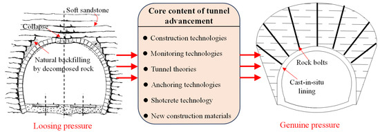 - Wang, J. Innovative Concepts in Conventional Tunnelling; China Communications Press Co., Ltd.: Beijing, China, 2021. [Google Scholar]