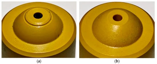 Post-experimental structural analysis assessed the durability of both contact geometries after exposure to ultra-high-pressure conditions of 87.5 MPa. Figure 17 presents microscopic images comparing the plunger tip geometries of rectangular and concave contact geometries after completion of the test sequence.