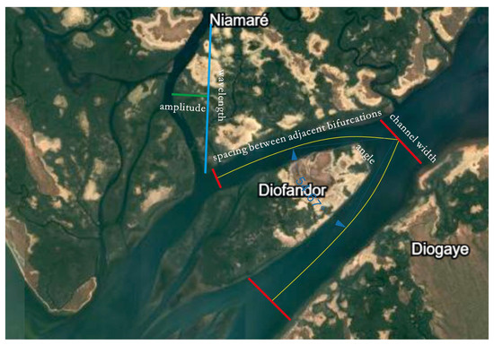 The limitation in image resolution directly affects the measurement accuracy. According to the research of Lillesand et al. [30], a manual picking deviation of 10 pixels will lead to an actual positional error of 50–150 m (calculation method: positional error = pixel deviation × image resolution). This error has significantly different impacts on parameters at different scales: within the wavelength dataset range of this study (1500–4000 m), a 150 m error accounts for 3–10%; for small-scale amplitude parameters (such as the average amplitude of the Saloum River delta being 680 m), the proportion of the same error is as high as 22% (Table 2). To control the error, the manual picking accuracy in this study is strictly limited to ≤5 pixels (corresponding to an error of 25–75 m), reducing the positional error by 50% compared to the theoretical maximum value. Nevertheless, small-scale parameters are still greatly affected. Taking the Saloum River delta as an example, the measured amplitude value may fluctuate by ±10–22% due to errors.