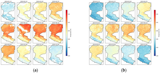 - Duan, S.-B.; Li, Z.-L.; Wu, H.; Leng, P.; Gao, M.; Wang, C. Radiance-Based Validation of Land Surface Temperature Products Derived from Collection 6 MODIS Thermal Infrared Data. Int. J. Appl. Earth Obs. Geoinf. 2018, 70, 84–92. [Google Scholar] [CrossRef]