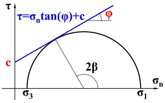 where τ denotes shear stress, σn represents normal stress, φ is the internal friction angle, and c indicates cohesion.