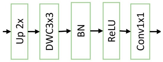 To further address the issue of large computational resources in RT-DETR, we added an efficient upsampling convolution block (EUCB) module. The EUCB employs an efficient upsampling strategy, using deep convolution instead of standard convolution to prevent the loss of important information during upsampling, especially for the details of small targets. At the same time, it reduces the number of channels through 1 × 1 convolution to maintain computational efficiency and reduce redundant features. This optimized the computational burden encountered by the model when performing upsampling on images while maintaining high accuracy.