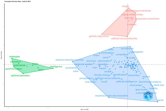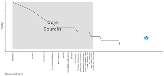 The Bradford’s Law method groups the journals into three different sections that should have the same number of papers, but each category has a different number of citations. According to Yang et al. [49], the Bradford’s Law clusters journals using the formula 1:n:n2. The most representative journals from Zone 1 were IEEE Access (11 articles), Energies (9 articles), Mathematics (7 articles), Applied Sciences-Basel (6 articles), and Applied Energy (5 articles). The most relevant sources in Zone 2 were Journal of Hydrologic Engineering (3 articles), Journal of Intelligent & Fuzzy Systems (3 articles), Neural Computing & Applications (3 articles), Renewable Energy (3 articles), and Theoretical And Applied Climatology (3 articles). In the last part, Zone 3, the most significant journals were Economies (1 article), Energy and AI (1 article), Energy and Buildings (1 article), Energy Conversion and Management (1 article), and Energy Exploration & Exploitation (1 article).