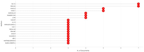 According to the research conducted by Soliman et al. [51], the most relevant authors in the field of AI were Li X (148 papers), Wang Y. (144 papers), Zhang Y. (143 papers), Wang Z (139 papers), Liu Y. (133 papers) and Wang J. (131 papers). Comparing the authors’ results with our outcome, only two authors were common, with the differences coming from the database and timespan selection, as Soliman et al. [51] focused on CiteScore Scopus journal papers that had been published between 2020 and 2021.