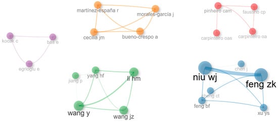 Figure 8 presents the authors with the highest impact, based on the number of published articles. In first place were two authors, Feng ZK. and Niu WJ., each with seven articles, followed by Wang JZ. and Wang Y., each with five documents, while Egrioglu E., Li HM., and Pinheiro CAM. published four documents each. The last authors, with three documents released, were Bueno-Crespo A., Cao Y., Cecilia JM., Yang HF., Xu YS., Morales-Garcia J., Feng BF., Jiang P., Khashei M., Lee J., and Martinez-Espana R. The article fractionalized value defines the contributions of authors based on the number of published articles [50], according to the Bibliometrix webpage. The author with the highest article fractionalized value was Egrioglu E. with 1.78, followed by Feng ZK. and Niu WJ. with 1.58 each, Wang JZ. with 1.33, Wang Y. with 1.25, Cao Y. with 1.03, and Li HM. and Pinheiro CAM. with 1.00 each, while Bueno-Crespo A. and Cecilia JM had the lowest values in the top 10, with only 0.58 each. Yang HF. had an article fractionalized value of 0.75, while Xu YS. had an article fractionalized value of 0.54, Morales-Garcia J. had a value of 0.58, Feng BF. had an article fractionalized value of 0.54, Jiang P. had an article fractionalized value of 1.00, Khashei M. had an article fractionalized value of 1.33, Lee J. had a value of 0.64, and Martinez-Espana R had a value of 0.58.