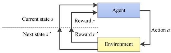 The deep reinforcement learning DQN algorithm combines reinforcement learning and neural networks. The DQN [31] is based on the traditional Q-learning algorithm. The goal of Q-learning is to learn an action-value function that assigns a value to each state–action pair. The goal of the DQN algorithm is to approximate the optimal action-value function (Q*(s, a)) using deep neural networks: