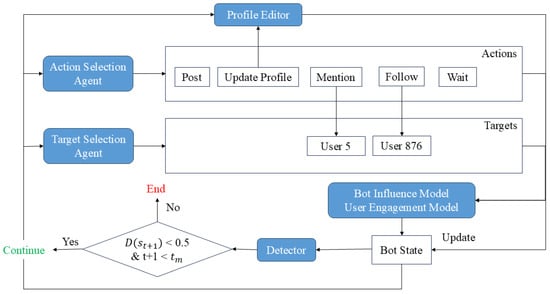 - Le, T.; Tran-Thanh, L.; Lee, D. Socialbots on fire: Modeling adversarial behaviors of socialbots via multi-agent hierarchical reinforcement learning. In Proceedings of the ACM Web Conference 2022, Lyon, France, 25–29 April 2022; pp. 545–554. [Google Scholar]