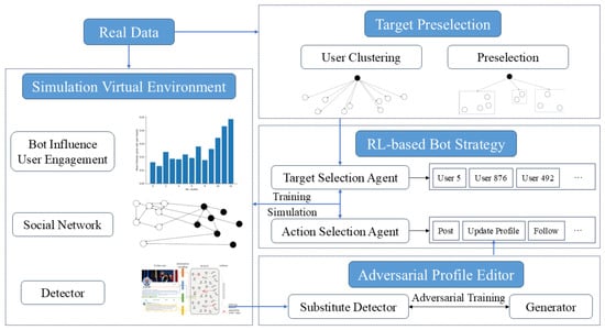 - An adversarially trained profile editor and a preselection mechanism based on user clustering were proposed to enable the simulation of various novel bots that have evolved in different aspects within a large social network.
