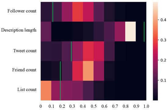 - Profile features, such as user name length, account age, and follower count.