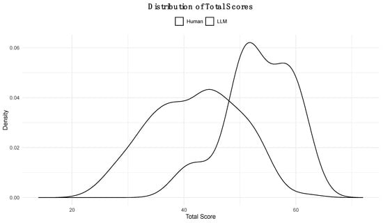 The sample size of 134 human participants was considered appropriate for Rasch modeling and item calibration. Prior psychometric literature indicates that sample sizes between 100 and 200 are adequate for 1PL models when working with instruments containing 30–100 items, particularly under unidimensional assumptions and when sufficient item variability is present. Moreover, Rasch models are known for their statistical stability and low bias in small-to-moderate samples due to their strong model constraints [20,21,28]. While larger samples would enable finer subgroup analysis or exploration of multidimensional constructs, the present study—designed as a benchmarking analysis—offers robust estimates for the intended comparisons.