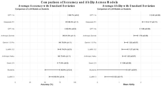 Figure 2 provides a side-by-side comparison of the model accuracies and Rasch-based abilities, reinforcing the observed performance disparities.